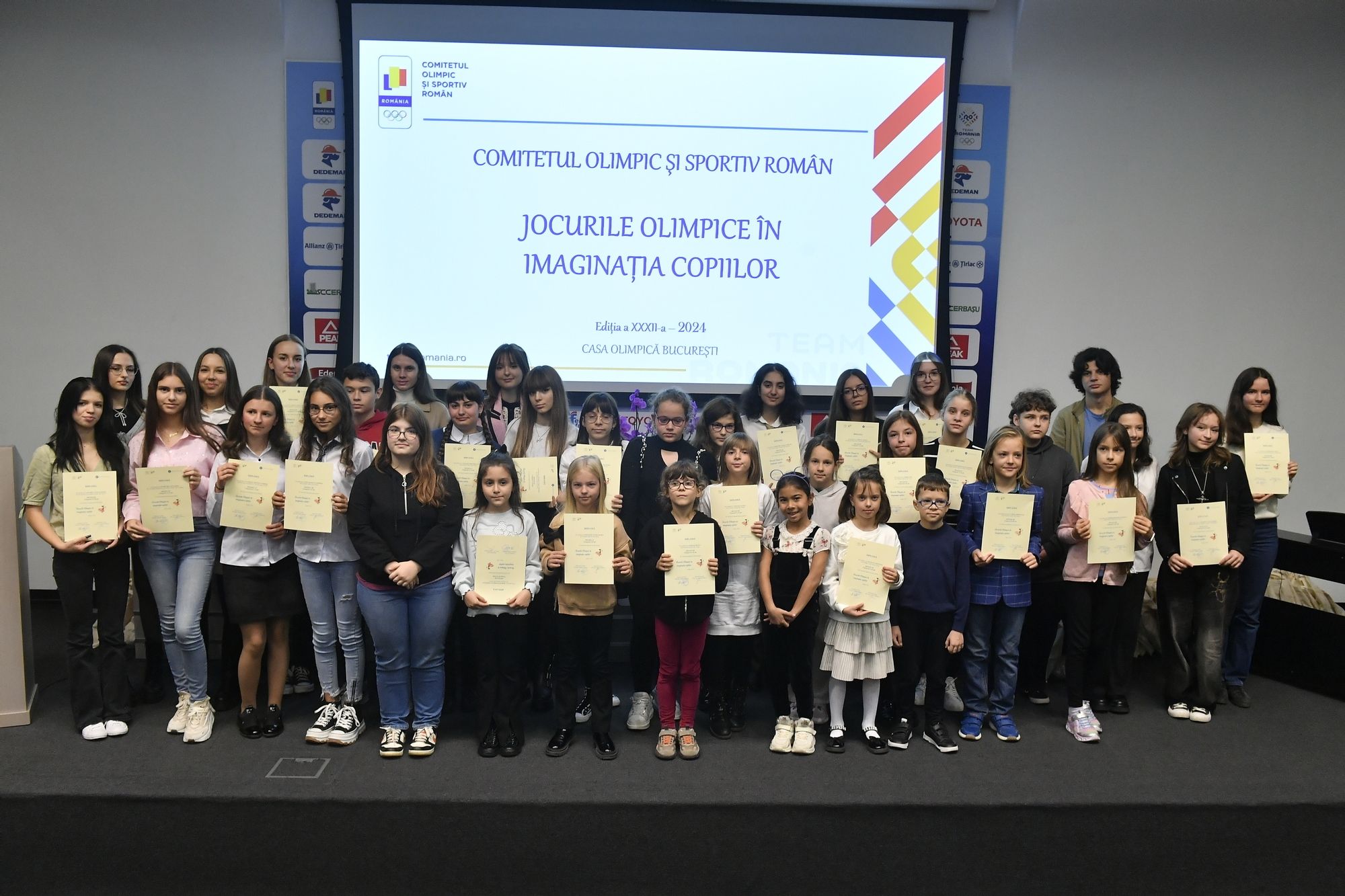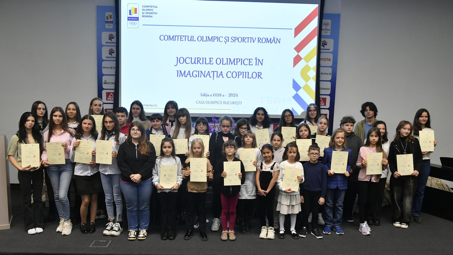 Festivitatea de premiere a celei de-a XXXII-a ediții a concursului național de arte plastice „Jocurile Olimpice în imaginația copiilor” din 2024, a avut loc și în acest an, la Sala Amfiteatru din incinta Casei Olimpice din București. Cei mai talentați participanți au venit în Capitală din toate colțurile țării pentru a-și primi premiile, pentru a simți vibrația olimpică din timpul ceremoniei și pentru a vizita expoziția lucrărilor premiate amenajată la Muzeul Sportului.