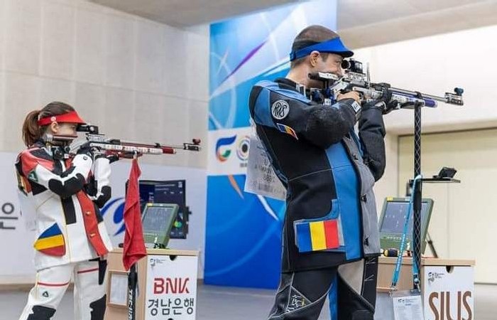 Samuraii Laura Coman si Alin Moldoveanu au cucerit medalia de argint la Cupa Mondiala de la New Delhi in proba de echipe mixte 10 m pusca aer comprimat