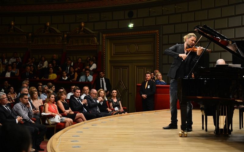 Celebrul violonist David Garrett si pianistul Julien Quentin au sustinut un recital de exceptie la Bucuresti, la Ateneul Roman, la invitatia Comitetului Olimpic si Sportiv Roman (COSR) si a partenerului sau principal Dedeman, cu sprijinul Ministerului Culturii.