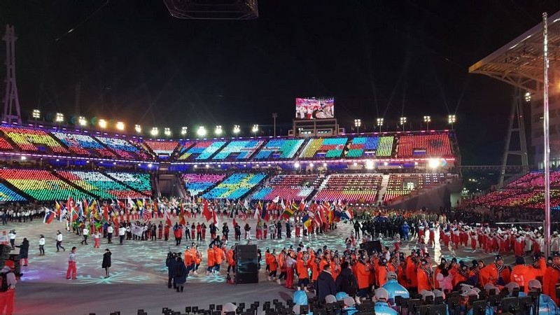 Asa cum au facut-o si la ceremonia de deschidere, delegatiile Republicii Coreea si Republicii Populare Democrate Coreene au intrat pe stadion impreuna, transmitand un puternic mesaj de unitate.