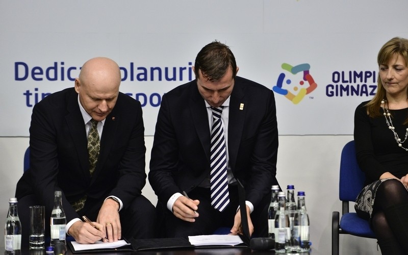 Comitetul Olimpic si Sportiv Roman (COSR), Ministerul Educatiei si Cercetarii Stiintifice (MECS) si zece federatii nationale sportive au semnat la inceputul anului, la Casa Olimpica din Bucuresti, Protocolul de colaborare privind organizarea si desfasurarea, in premiera, a Olimpiadei Gimnaziilor.