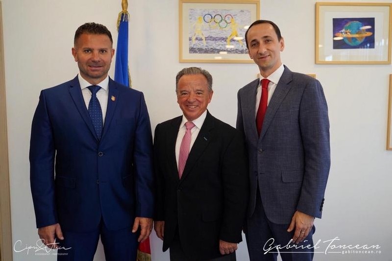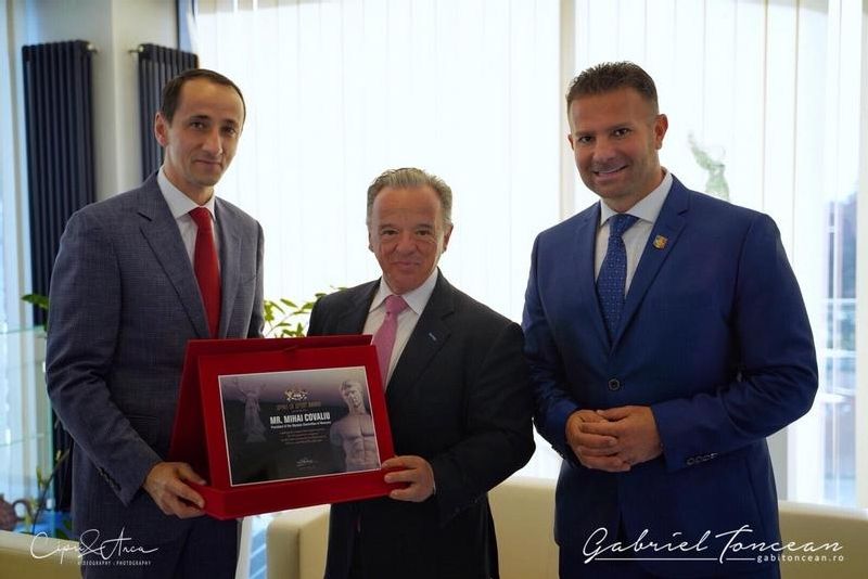 Presedintele Comitetului Olimpic si Sportiv Roman Mihai Covaliu i-a primit astazi la Casa Olimpica, sediul COSR din Bucuresti, pe presedintele Federatiei Internationale de Culturism si Fitness Rafael Santonja si pe Gabriel Toncean, presedintele forului roman de specialitate.