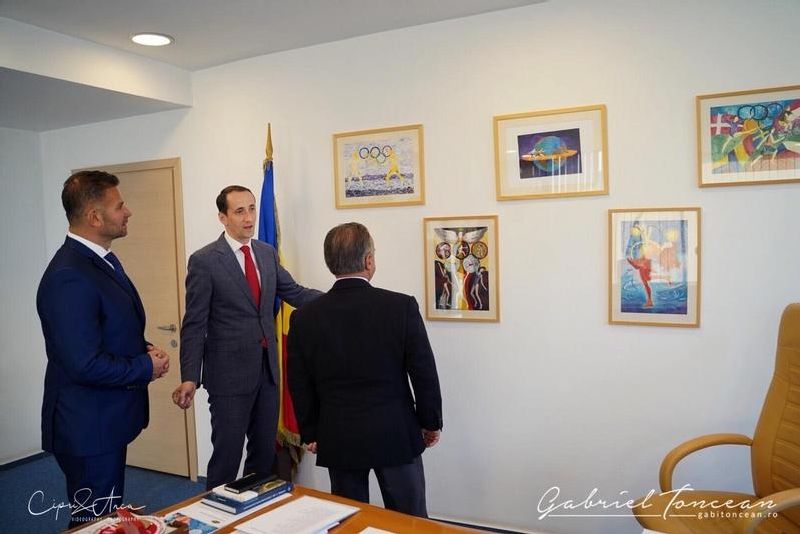 Cei doi invitati ai presedintelui Mihai Covaliu au vorbit despre sustinerea, promovarea si dezvoltarea fitnessului in Romania si si-au manifestat interesul pentru valorile olimpice.