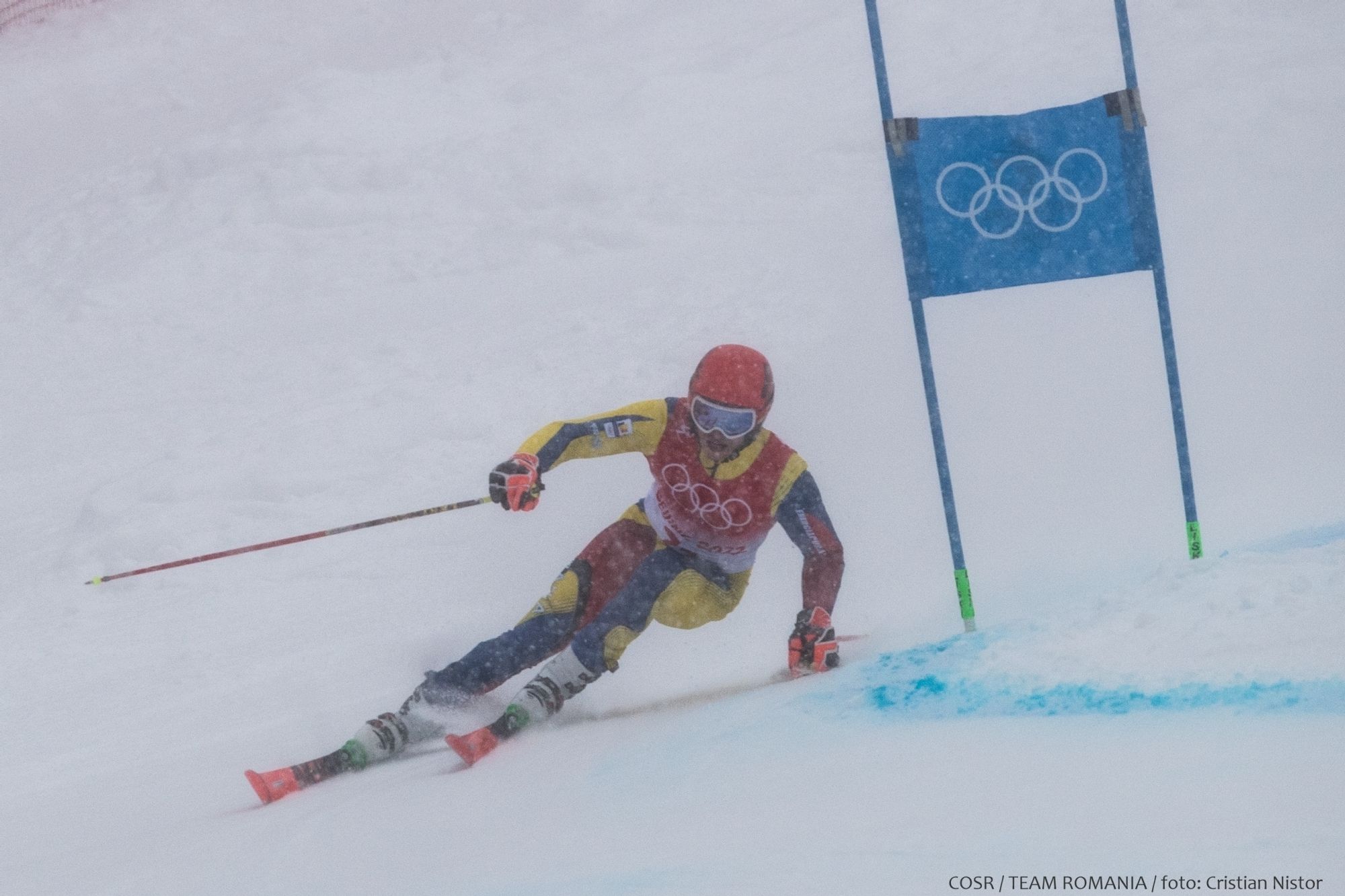 Ninsoarea abundentă și ceața au creat astăzi probleme la Yanqing celor 89 de schiori alpini care au luat startul în proba masculină de slalom uriaș. La prima sa prezență în competiția olimpică a seniorilor, reprezentantul României s-a prezenta onorabil în cele două manșe terminate doar de 46 dintre sportivii înscriși.