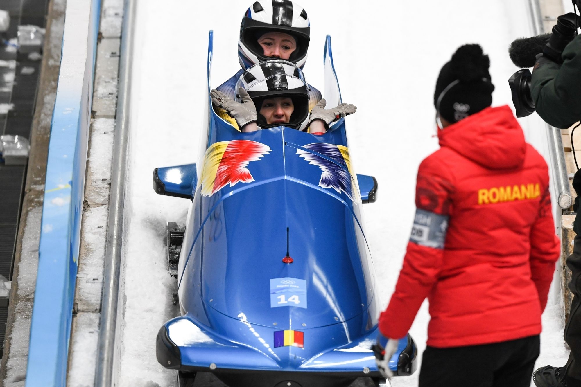 În cea de-a 15 zi competițională de la Beijing 2022, România a fost reprezentată în cursele de bob două persoane feminin și bob patru persoane masculin.