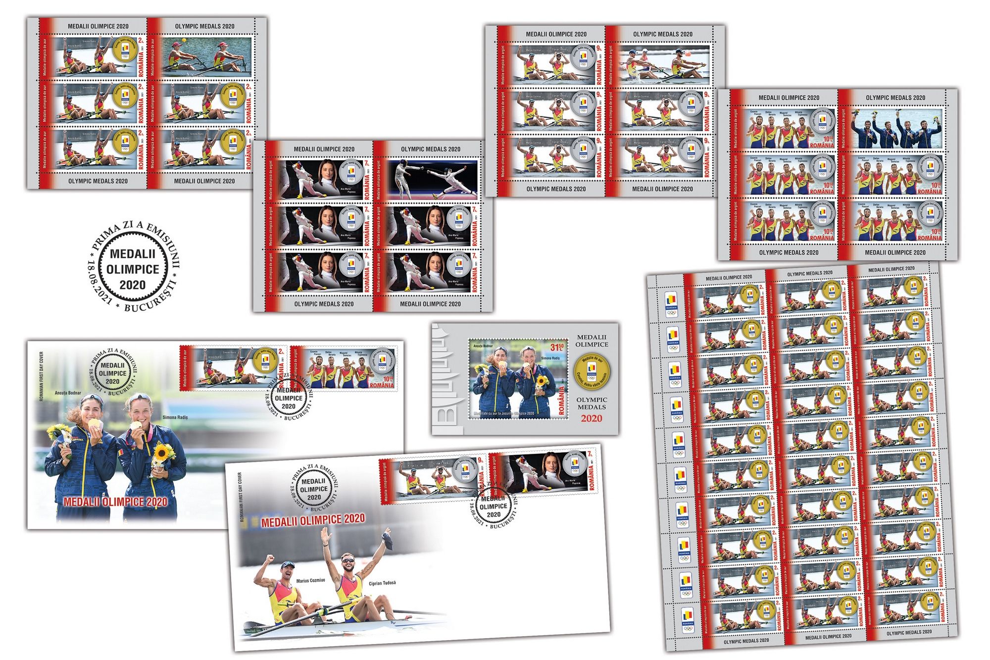 Emisiunea de mărci poștale „Medalii Olimpice 2020” este disponibilă de azi în magazinele Romfilatelia din București, Bacău, Brașov, Cluj-Napoca, Iași, Timișoara, precum și în magazinul online: http://romfilatelia.ro/store/. Aceasta este completată de două plicuri „prima zi”, patru coli de 30 timbre cu 10 tabsuri și patru minicoli de 5 timbre cu vignetă.