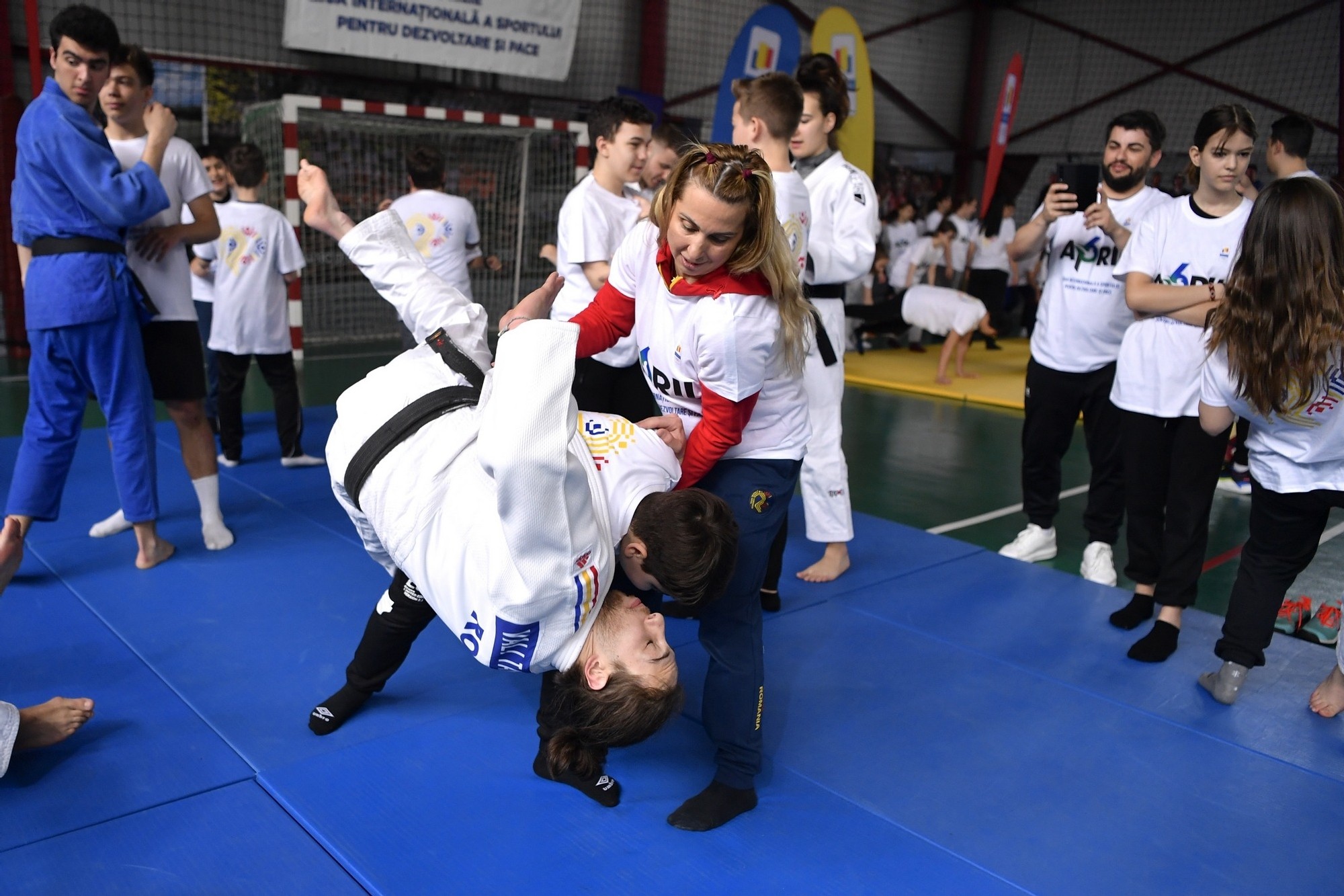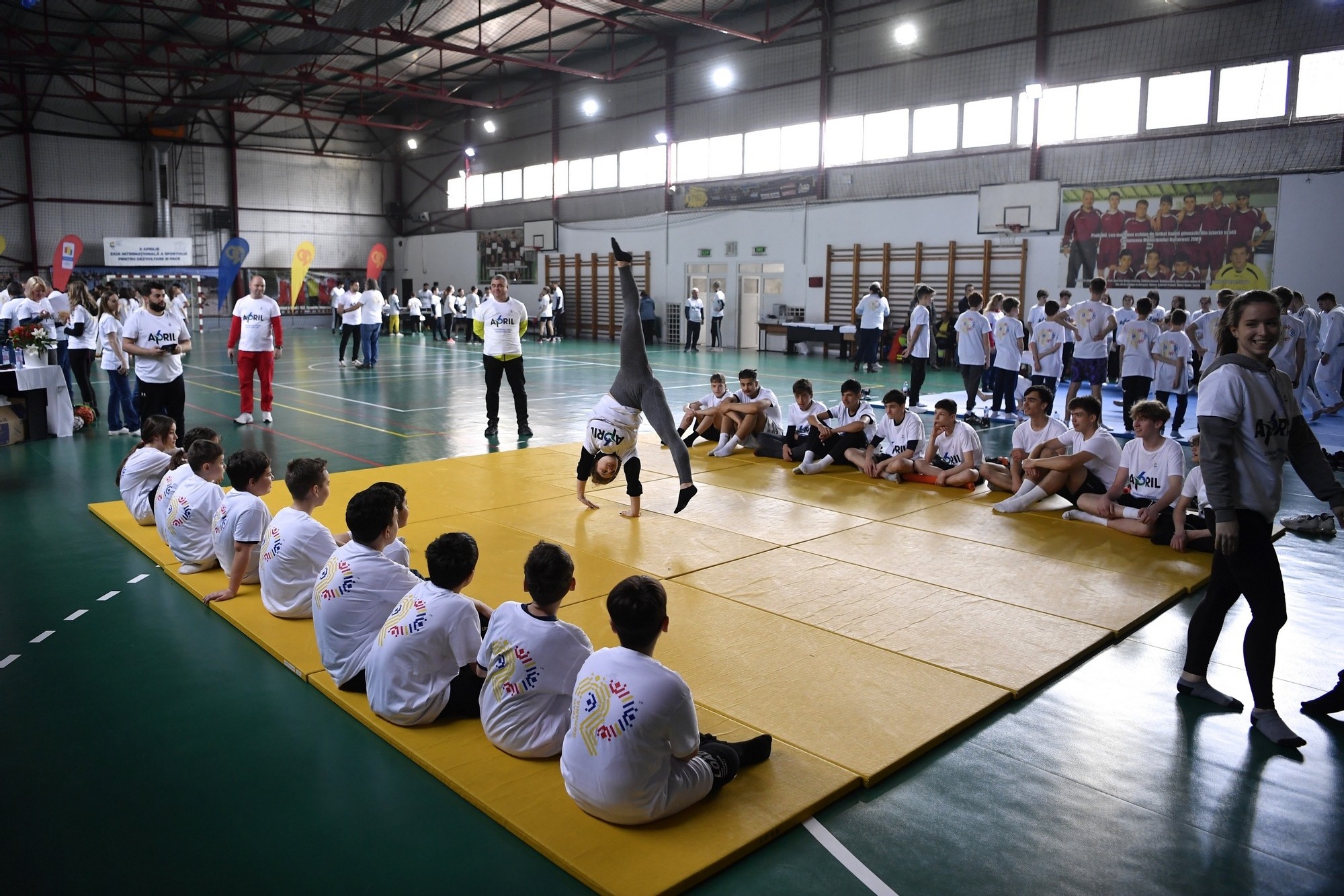 În sala de sport din incinta școlii au fost amenajate patru ateliere de lucru la judo, gimnastică, tenis de masă și baschet 3x3, iar la fiecare atelier câte 20 de elevi au fost inițiați în tainele sporturilor favorite de sportivi de performanță și studenți de la Academia de Educatie Fizica si Sport.