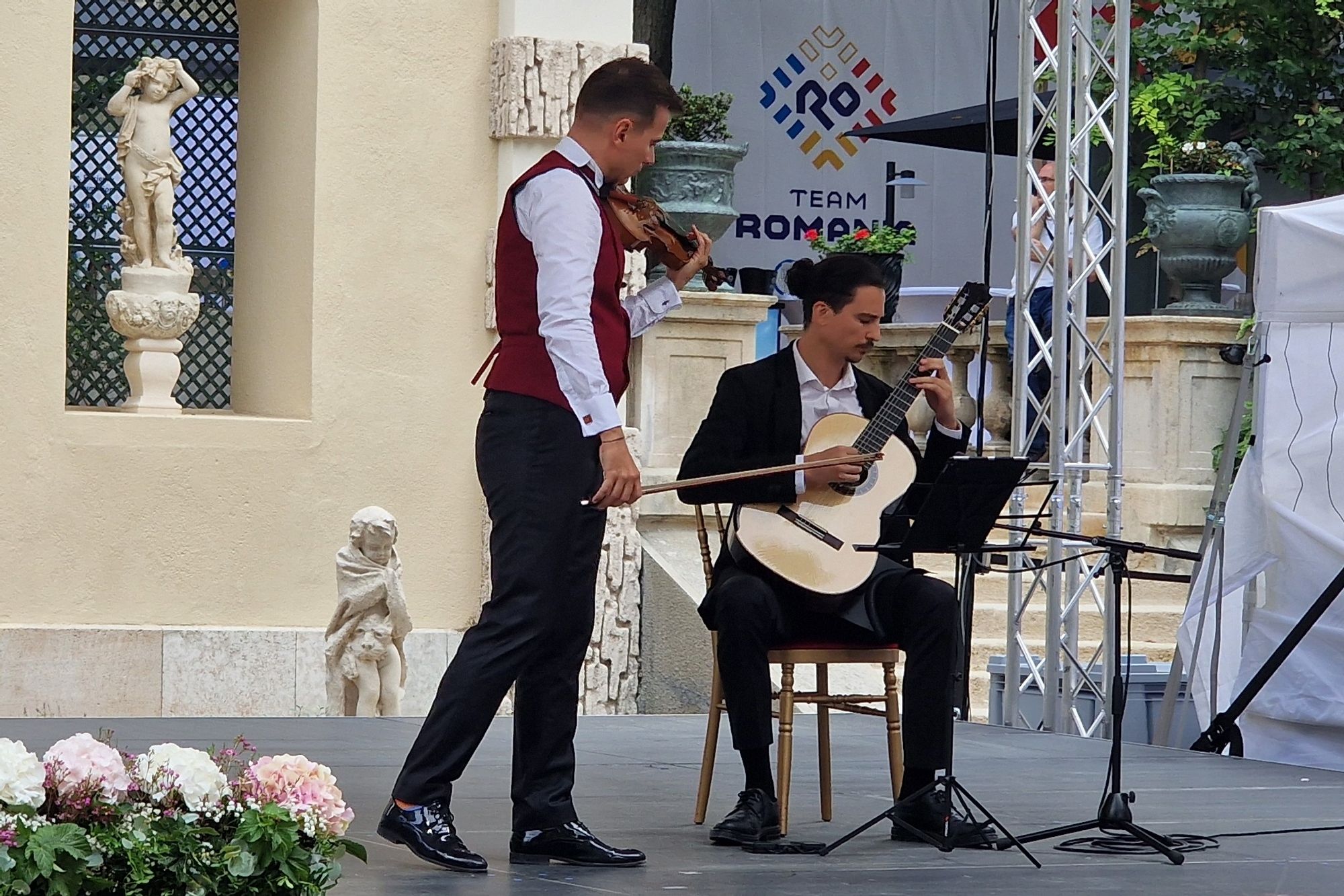 Casa României din incinta Palatului Behague din Paris a fost în această seară gazda unui eveniment de înaltă clasă. Violonistul Alexandru Tomescu și a sa vioară Stradivarius, alături de chitaristul Dragoș Ilie au bucurat asistența cu un scurt recital de muzică clasică dedicat TEAM ROMANIA și performanțelor sportivilor români.