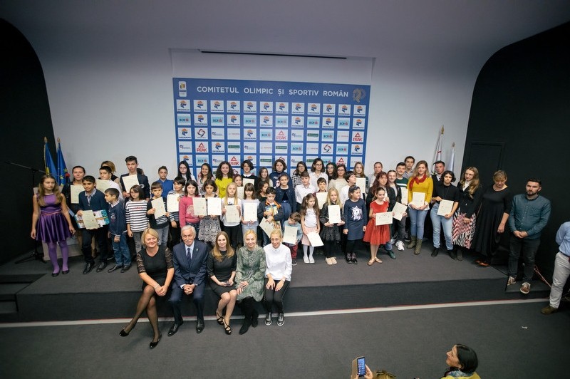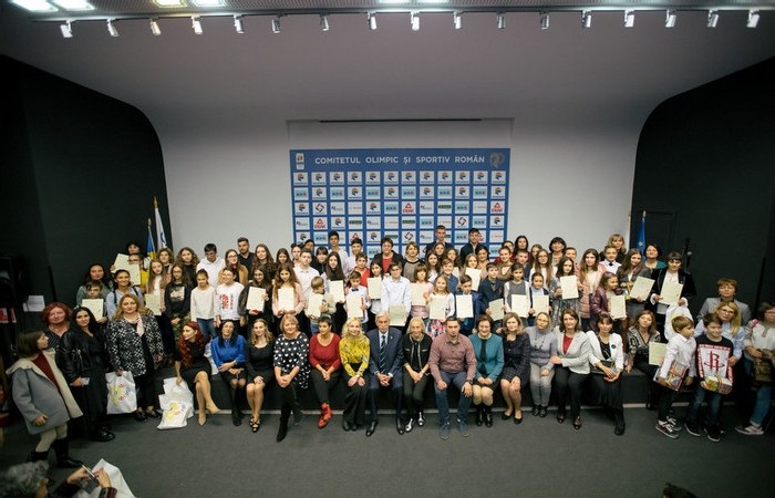 Laureatii editiei din acest an a concursului „Jocurile Olimpice in imaginatia copiilor”, pe scena Salii Amfiteatru din Casa Olimpica