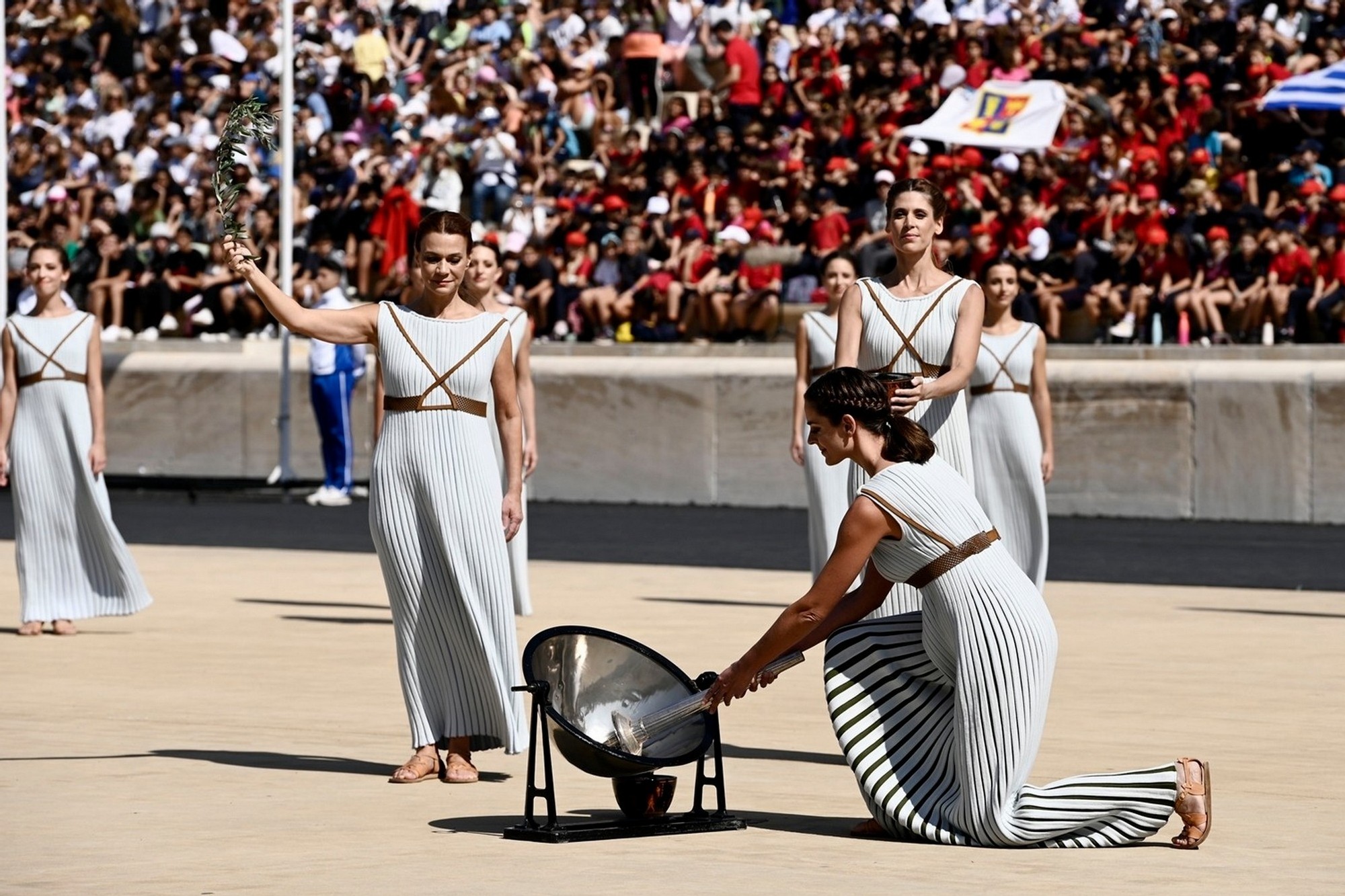 Pentru prima dată de la izbucnirea pandemiei de COVID 19, ceremonia de aprindere a Flăcării Olimpice a avut loc cu public. Numeroși spectatori au asistat la ceremonia desfășurată după ritualul antic din tribunele stadionului care în 1896 a găzduit prima ediție a Jocurilor Olimpice moderne.