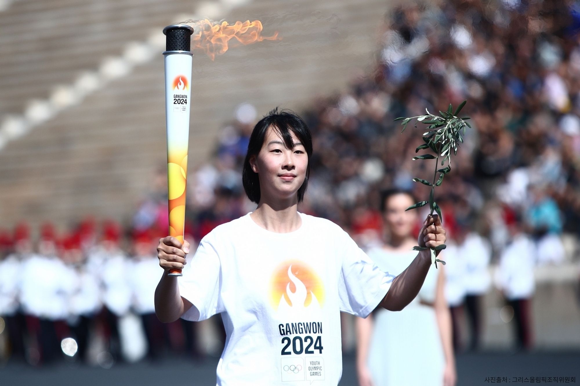 Cu 100 de zile înainte de startul celei de a IV-a ediții de iarnă a Jocurilor Olimpice de Tineret - JOT Gangwon 2024 Flacăra Olimpică a competiției a fost aprinsă pe emblematicul Stadion Panathenaic din Atena potrivt tradiției olimpice. Flacăra a fost aprinsă de la razele soarelui de Înalta Preoteasa, în interiorul stadionului, după care a fost transmisă la patru tineri purtători de torțe și apoi oferită lui Jin Jong-oh, copreședintele Comitetului de Organizare Gangwon 2024