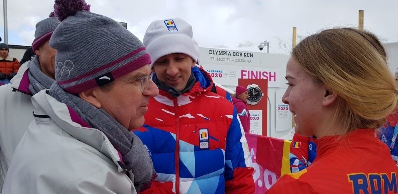 Thomas Bach, presedintele Comitetului International Olimpic (CIO), impreuna cu Octavian Morariu, membru CIO pentru Romania, s-au aflat alaturi de reprezentantii Romaniei care le-au incurajat din tribune pe Georgeta Popescu si Maria Antonia Sarbu, in finala probei feminine de monobob. Dupa competitie, presedintele CIO a felicitat-o pe Georgeta Popescu pentru titlul cucerit, a discutat cu sportivii si tehnicienii romani, dupa care a dat autografe si s-a fotografiat cu reprezetantii nostri