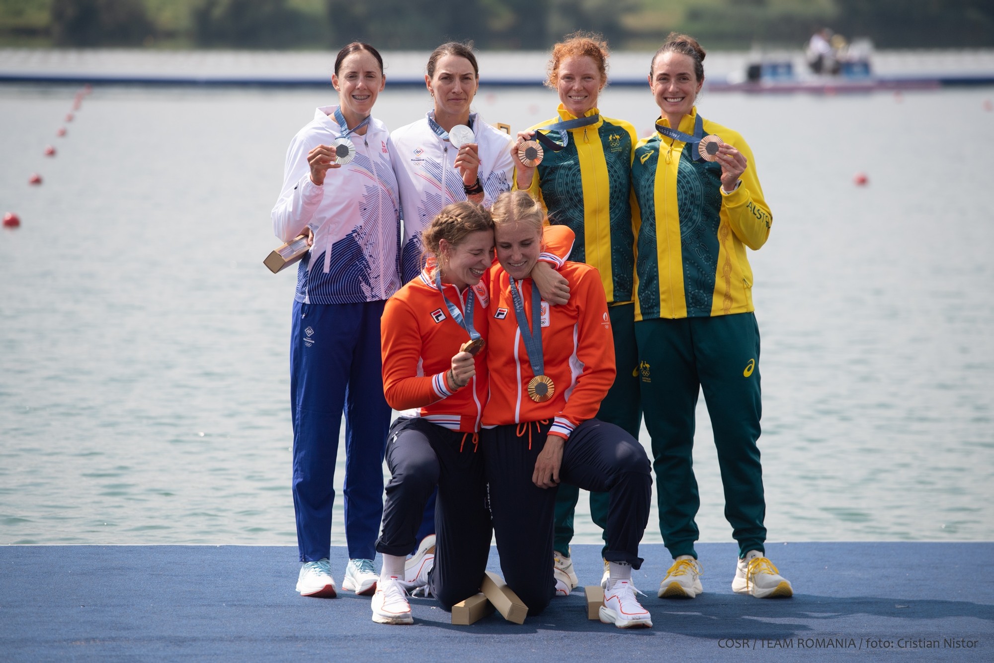 Ordinea pe podium Olanda – locul 1 (6:58.67), România – locul 2 (7:02.97), Australia – locul 3 (7:03.54)