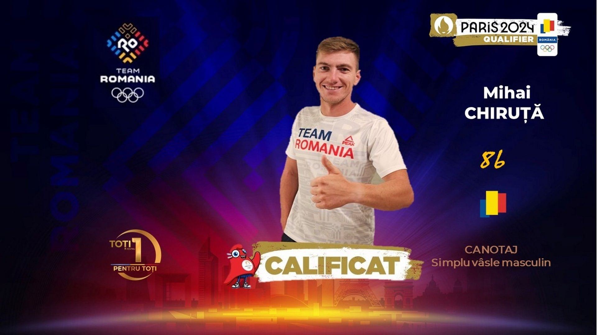 La ultima regată preolimpică la canotaj, care a avut loc la Lucerna, în Elveţia, reprezentantul României Mihai Chiruţă a reușit o spectaculoasă calificare la Jocurile Olimpice Paris 2024, devenind al 86-lea component al TEAM ROMÂNIA și al 45-lea canotor, ultimul, care obține biletul olimpic. Românul a avut o evoluție excelentă în Țara Cantoanelor, câștigând toate cele patru curse masculine de simplu vâsle (skiff simplu) în care a luat startul
