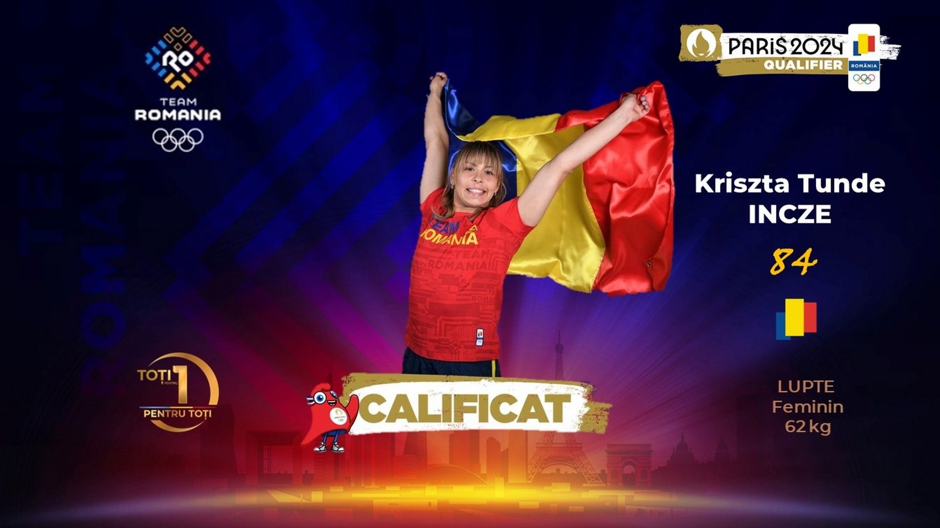 La Turneul Preolimpic Mondial de lupte din Turcia, de la Istanbul, ultima competiție de calificare la Paris 2024, Kriszta Incze a devenit cea de-a 84-a componentă a TEAM ROMANIA pentru Jocurile Olimpice de la Paris.